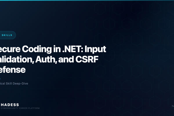 Secure Coding in .NET: Input Validation, Auth, and CSRF Defense. Skills, career paths, and how to get started on the HADESS platform.