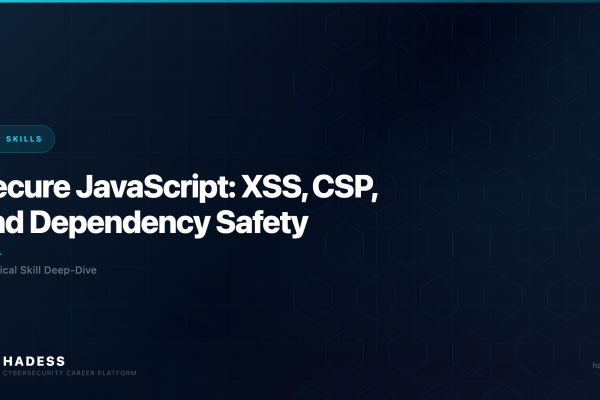 Secure JavaScript: XSS, CSP, and Dependency Safety. Skills, career paths, and how to get started on the HADESS platform.